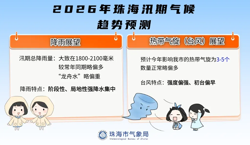 珠海市气象台预计,2026年珠海汛期(4-9月)阶段性与局地性气象灾害较为突出: