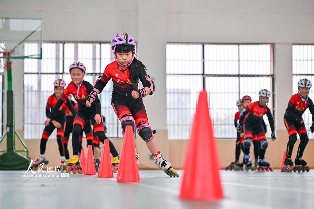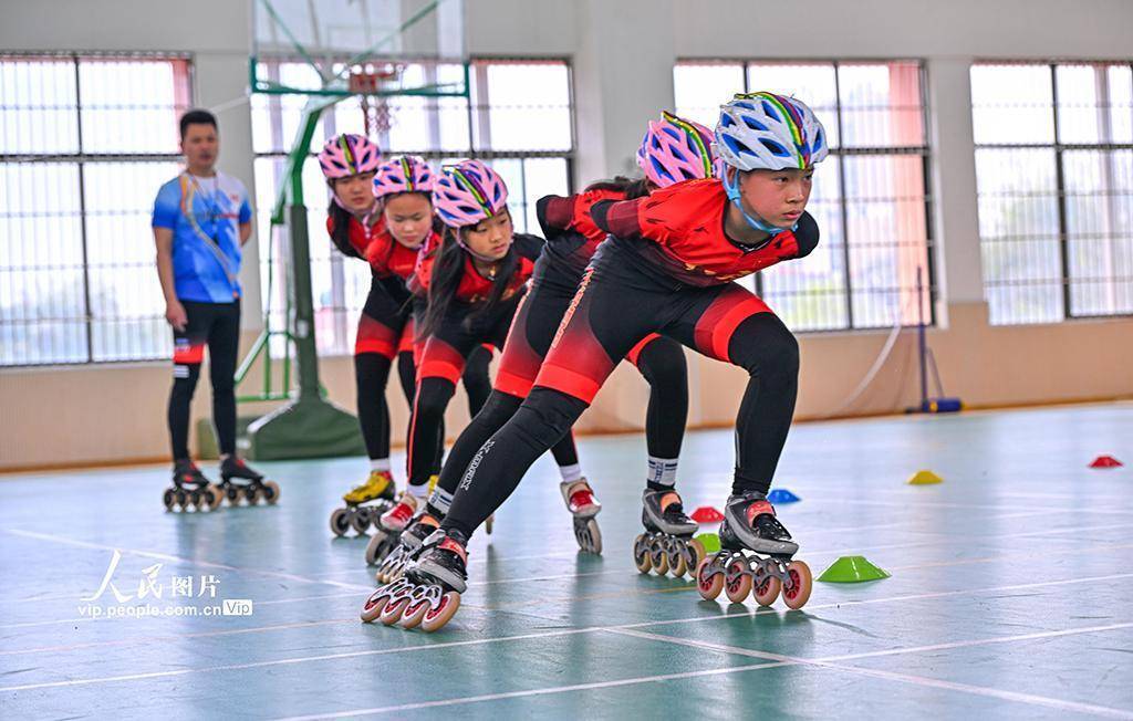 近年来,四川眉山仁寿县鳌峰小学校将轮滑运动作为特色社团活动引入校园,成立轮滑社团和兴趣小组,并聘请专职教练进行指导,让学生亲身体验轮滑运动的魅力,享受运动带来的快乐。潘帅摄(人民图片网)